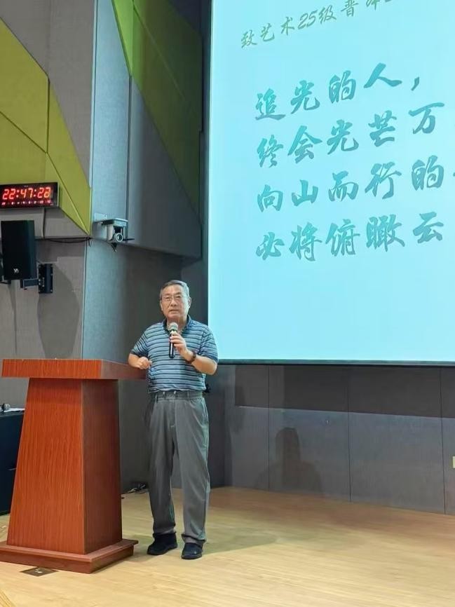 最后,艺术学院刘金祥副院长做了总结。他强调,大学不仅是传授知识之地,更是培养人格、塑造思想之所。他鼓励同学们勇于尝试,乐于奉献,积极参与实践活动,不断拓宽精神世界。同时,他特别提醒大家学会珍惜,珍惜校园时光与资源;持之以恒,坚持不懈,始终保持前行的勇气。最后,他祝愿全体2025级新生在浦江艺术学院度过一段美好的时光,迎来一个硕果累累的学习阶段。